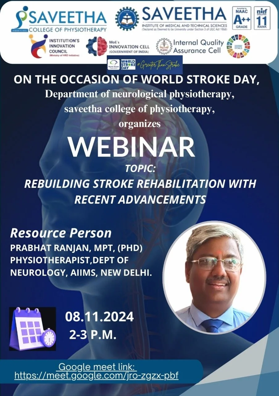 Saveetha College of Physiotherapy (map) Saveetha Nagar Kuthambakkam, TN, 600124 India ✚ gCal ✚ iCal To join the video meeting, click this link: https://meet.google.com/jro-zgzx-pbf